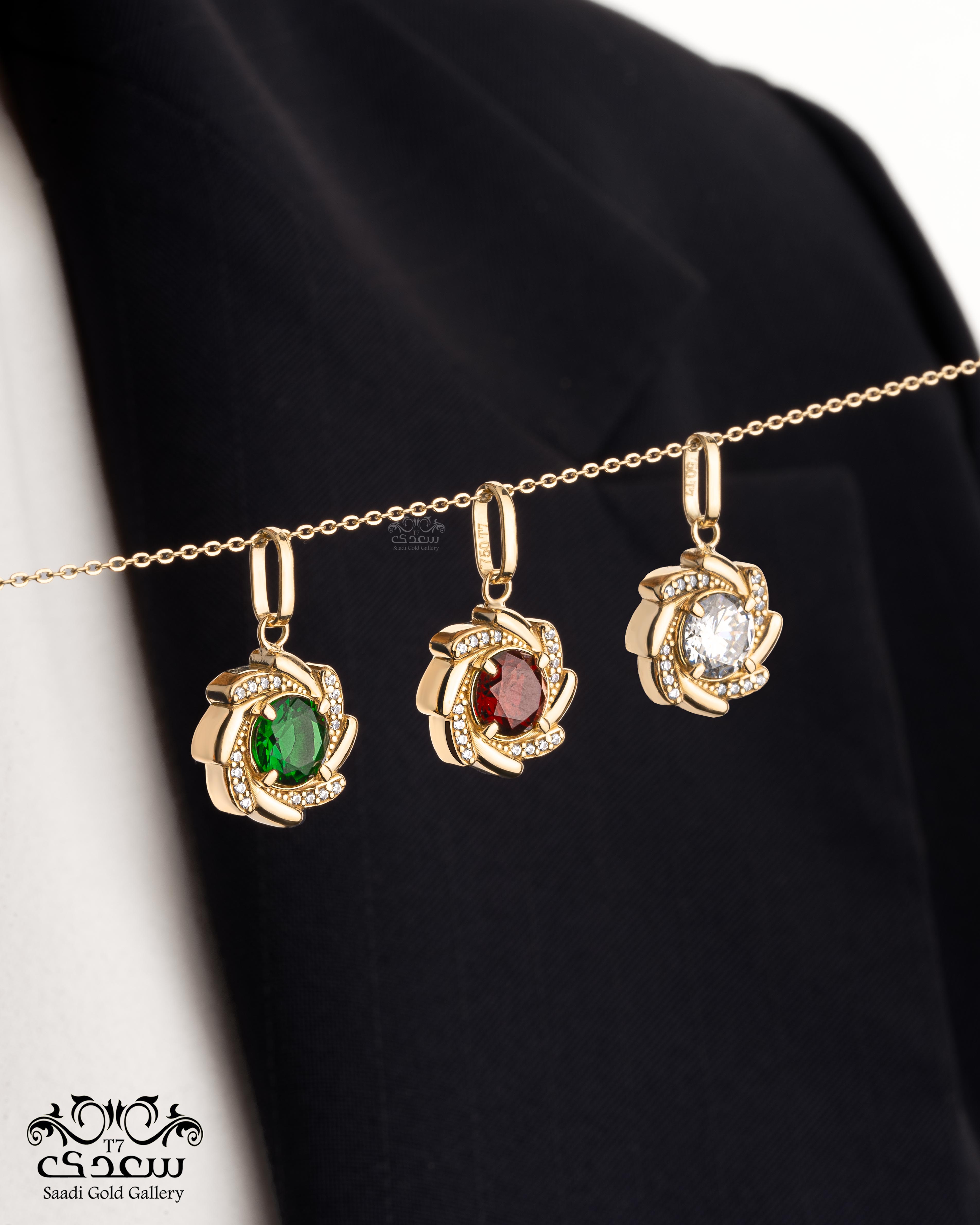 رنگ طلا زرد می باشد. طلا 18 عیار می باشد. وزن سنگ کسر شده است.