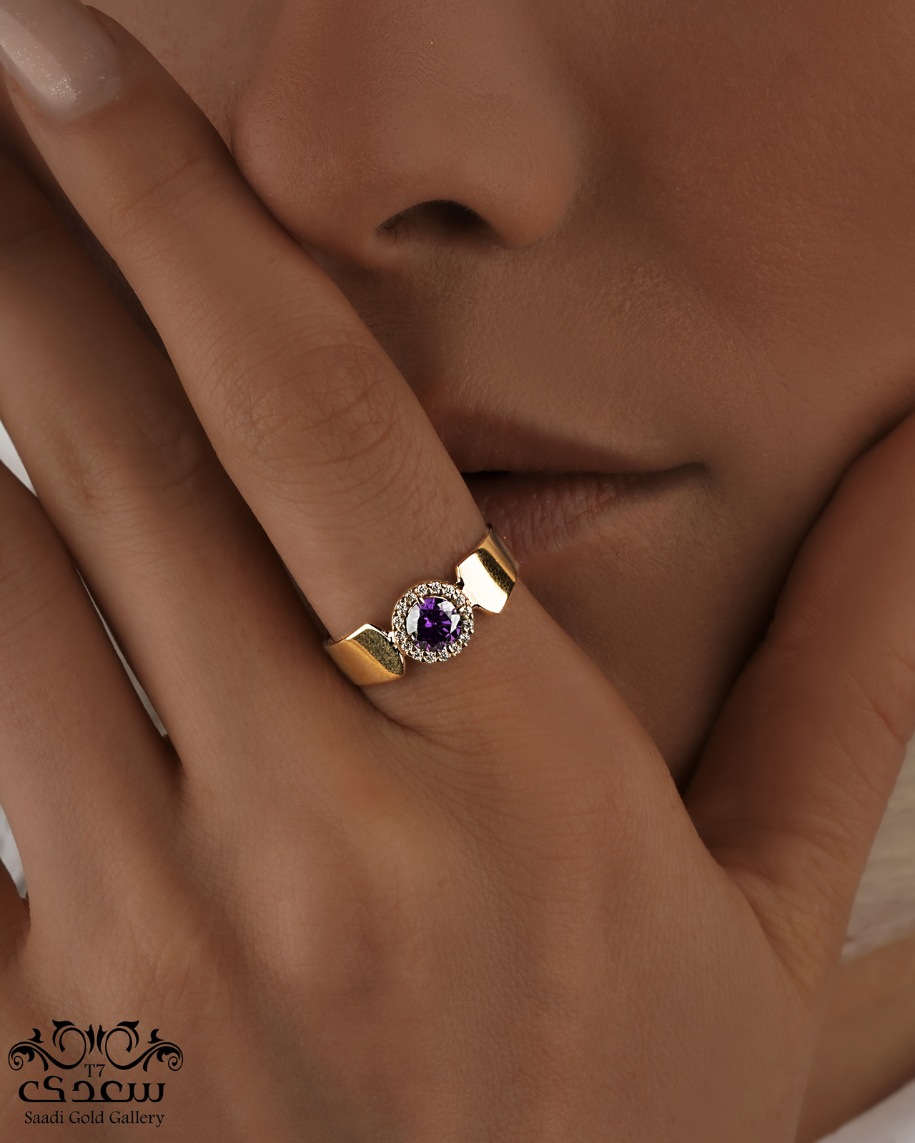 انگشتر رینگ نواری و سنگ بنفش
